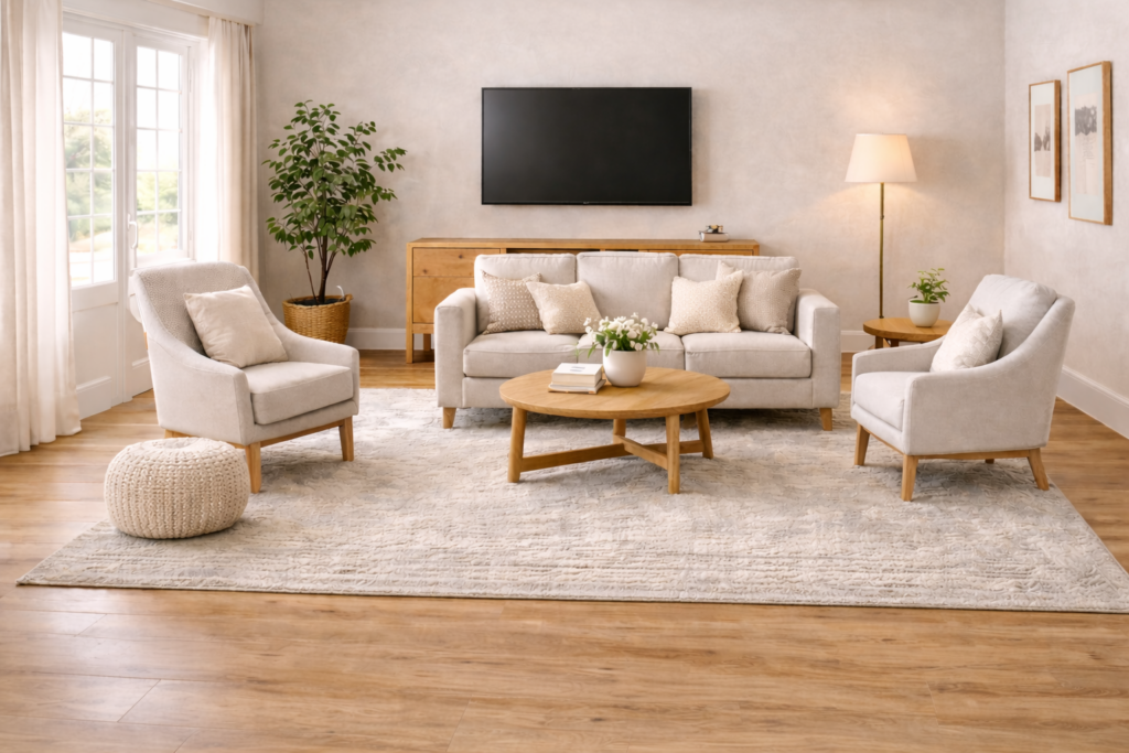 Small living rooms aren’t hard because you “don’t have enough furniture.” They’re hard because one wrong spacing decision (a sofa pushed too far forward, a rug that’s too small, a TV that’s off-center) can make everything feel cramped.