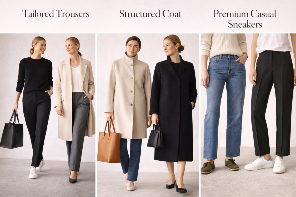 Outerwear becomes a statement of quiet luxury in 2026. Clean lines, neutral shades, and quality fabrics are key.